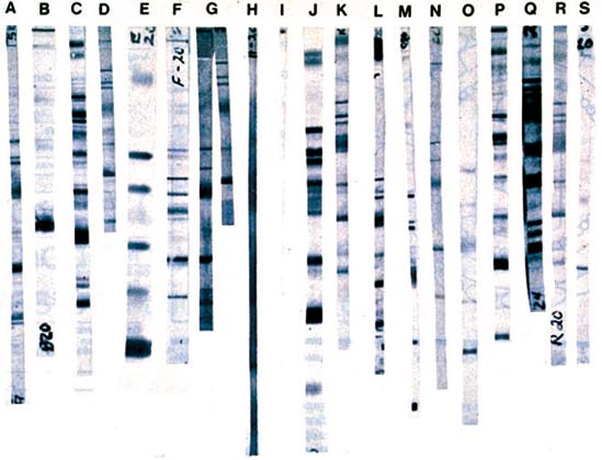 Fig. 3 - WB results from the same serum and obtained by 19 different